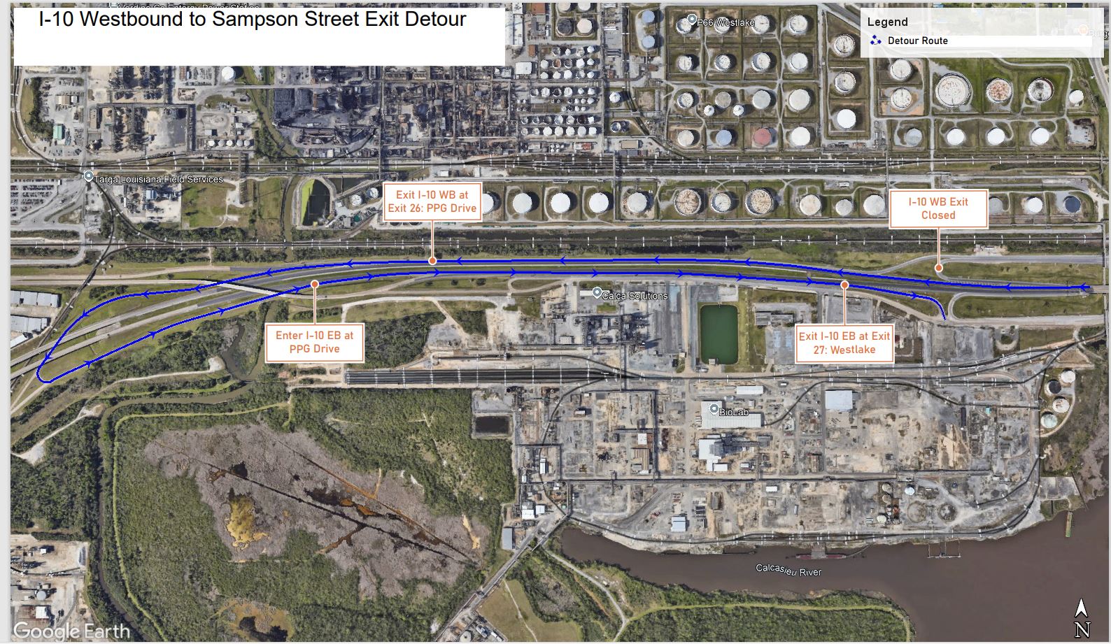 Westlake I-10 Calcasieu River Bridge Construction Detour Maps