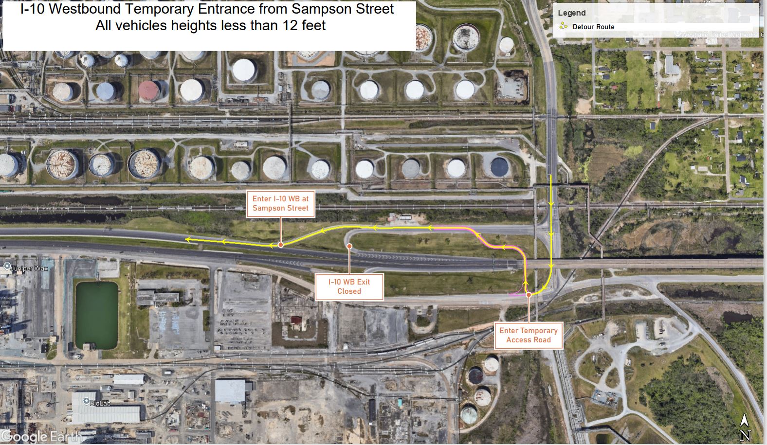 Temporary I-10 WB Entrance at Sampson St. (12-feet Height Restriction)